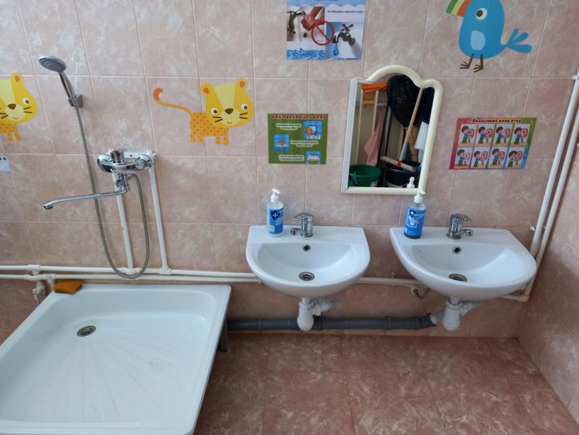 Санузел: шкаф для инвентаря - 1, вешалки для полотенец - 20 секций, умывальники - 2, душевой поддон с подводкой -1, полка для горшков – 1.